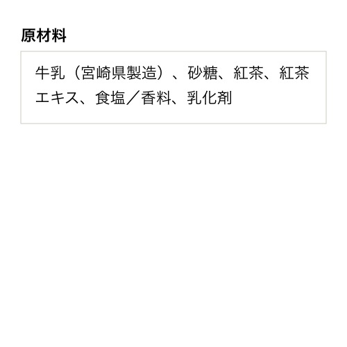 牛乳(宮崎県製造)、砂糖、紅茶、紅茶エキス、食塩/香料、乳化剤