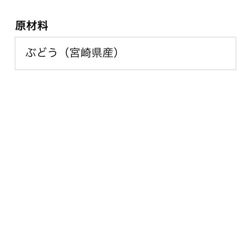 国産ぶどう100%ということで購入させて頂きました。そして宮崎県産と珍しい商品でした。スッキリしてるけど濃厚でおいしく頂きました。果汁100%なので小さなお子様にも最適かもですね。